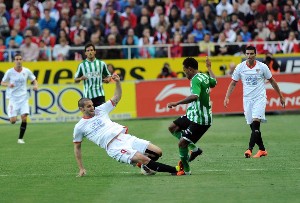 El Betis, que llegaba a Nervión con su objetivo ya conseguido de la permanencia, se lleva los tres puntos de Nervión en un partido donde el Sevilla FC volvió a mostrar una mala imagen, sobre todo en la segunda mitad, después de que Negredo adelantara muy pronto, minuto 5', al Sevilla, comenzando el choque mucho mejor que su rival, pero que fue diluyéndose con el paso de los minutos, entre otras cosa porque el Betis realizaría un buen planteamiento, poniendo mas intensidad al encuentro, en el que se hizo con el control del juego en el mediocampo, remontando un partido en los minutos finales de cada periodo de tiempo, 42' y 92' tras sendos lanzamientos de falta de Beñat.